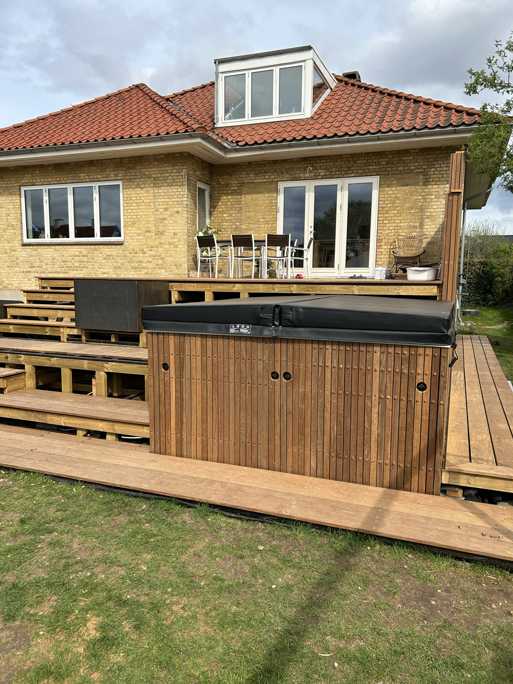 - Ipé terrasse bygget op på eksisterende flisebelægning: 98.440,- kr. inkl. moms